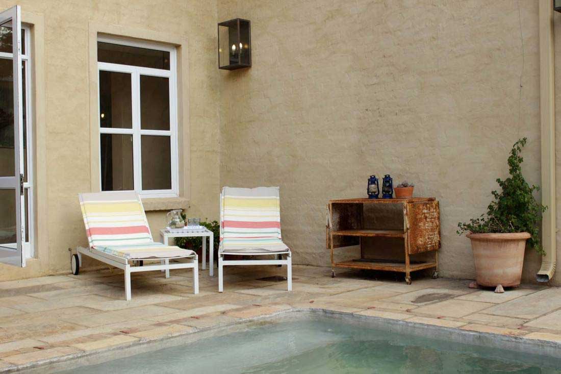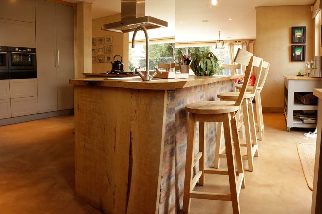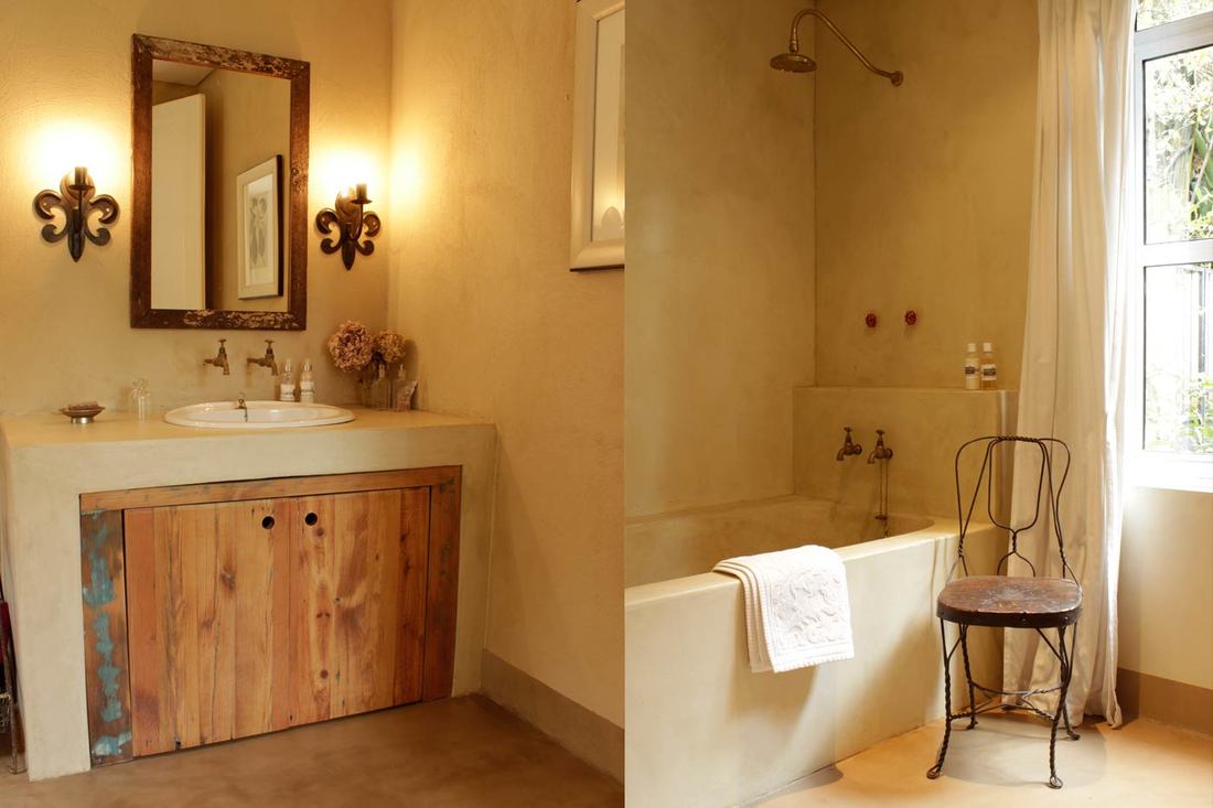 Floors | CreteCote Tan Interior & Exterior Walls | CemWash Sandstone Bathroom Walls & Vanities | SatinCrete Beach Sand Bathtub | SatinCrete Beach Sand Pool | PoolCrete Silver Grey